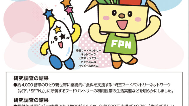ニュース 「令和6年度埼玉もうひとつの子どもの生活に関する実態調査」からみる親子の暮らし 2025年10月16日 管理者 埼玉フードパントリーネットワーク 大山典宏先生が特定非営利活動法人埼玉フードパントリーネットワーク所属の活動団体の協力を得て調査したアンケート結果を冊子としてまとめました。 …